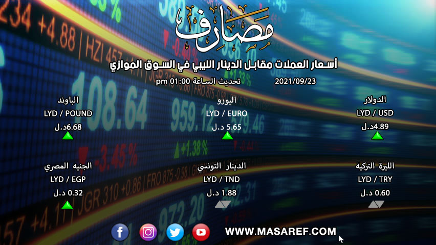 أسعار العملات مقابل الدينار الليبي في السوق الموازي 2021/09/23