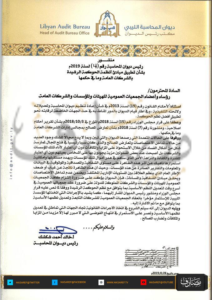 وطالب خالد شكشك خلال منشوره ضرورة التزام كافة الجمعيات العمومية للهيئآت والمؤسسات المملوكة للدولة على صرورة عقد جمعيتها العمومية في أسرع وقت، لتعديل النظم الاساسية بما يتوافق مع نظم الحوكمة الرشيدة وفقاً لما تنص على قرار مجلس الوزراء ومنشور رئيس ديوان المحاسبة.