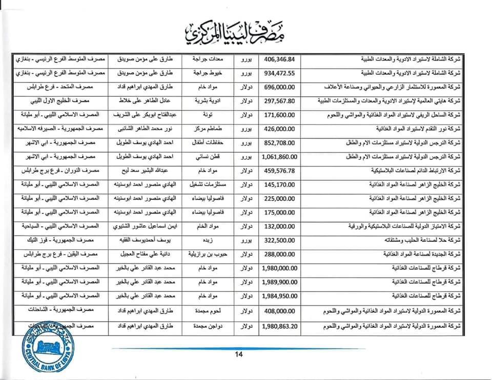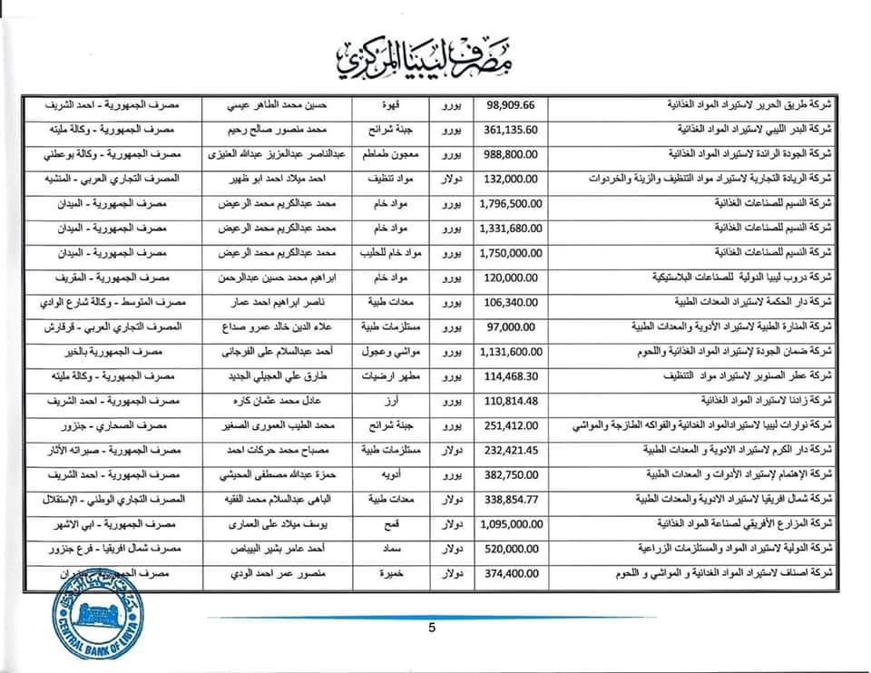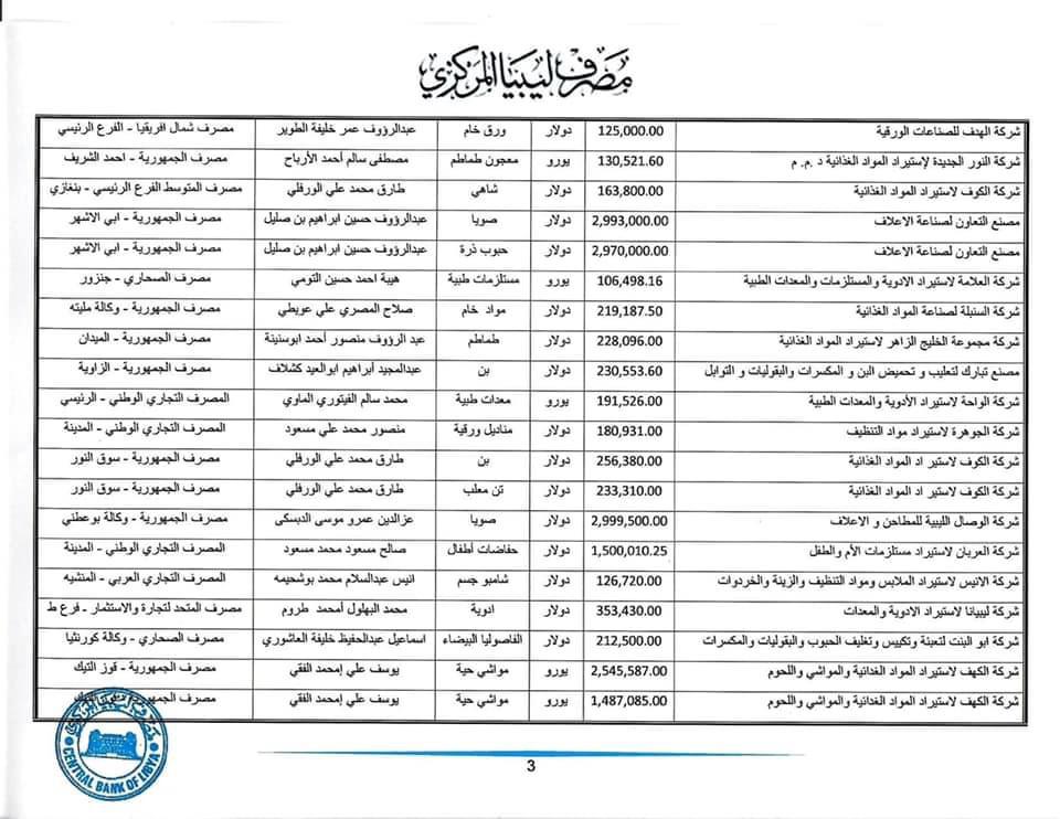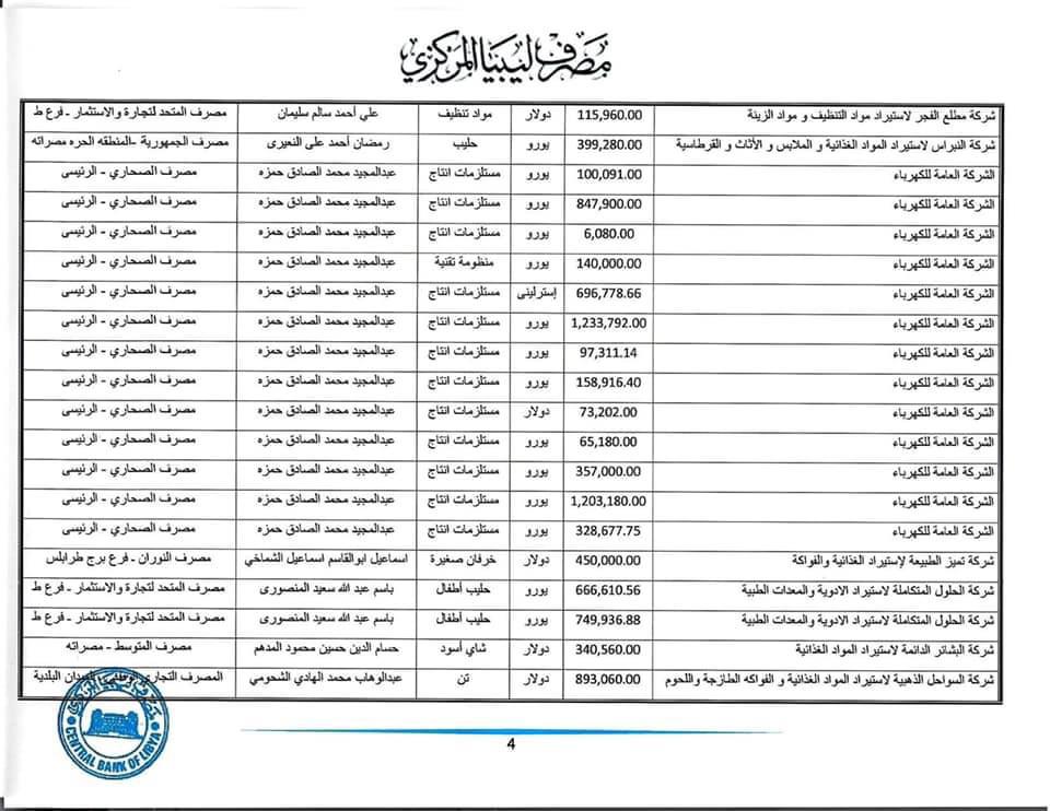 مُنحت لــ350 شركة : المصرف المركزي يكشف تفاصيل طلبات الاعتمادات المستندية المفتوحة من 31 مايو حتى 4 يونيو الجاري.