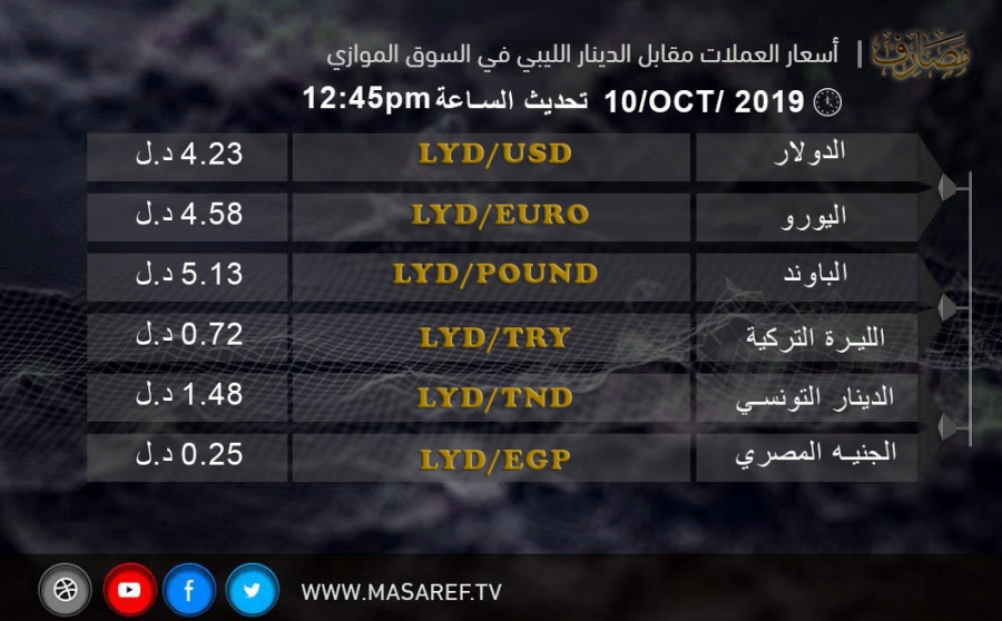 اسعار العملات مقابل الدينار الليبي في السوق الموازي 2019/10/10