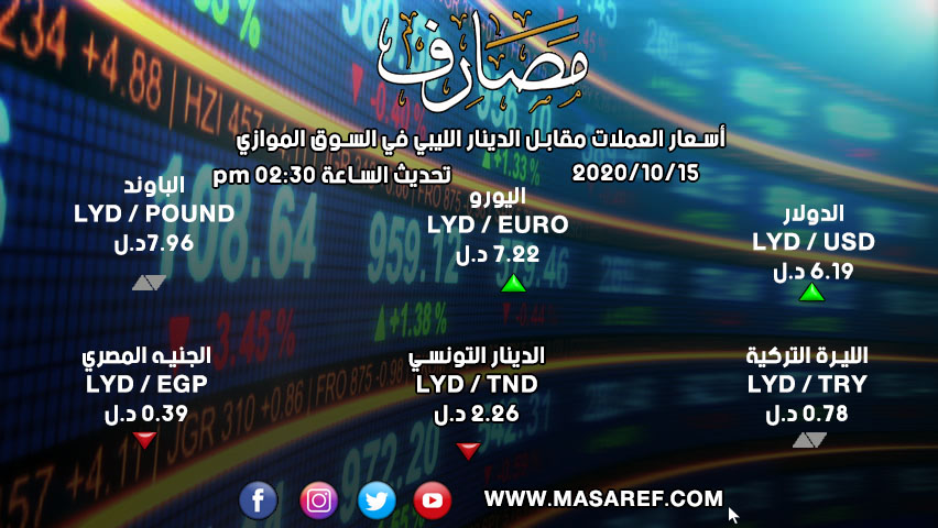 أسعار العملات مقابل الدينار الليبي في السوق الموازي 2020/10/15