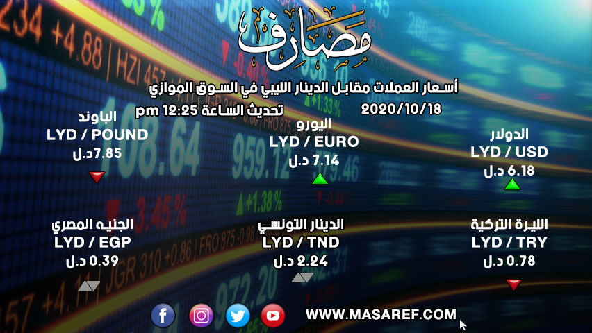 أسعار العملات مقابل الدينار الليبي في السوق الموازي 2020/10/18